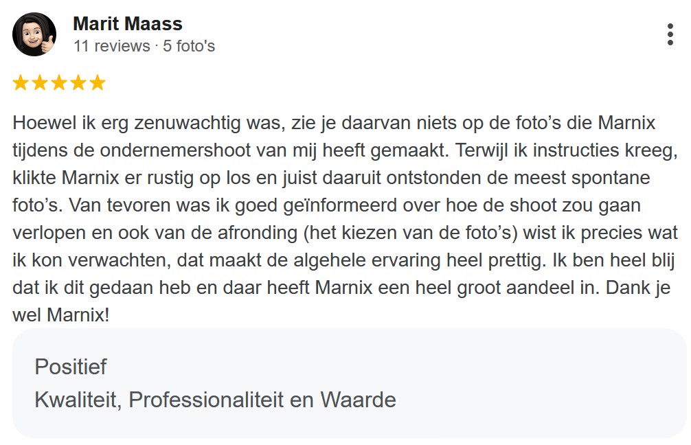 Persoonlijk vastgelegd door Marnix de Stigter. Internationaal erkend fotograaf met ruim 16 jaar aan ervaring in zakelijke fotografie.